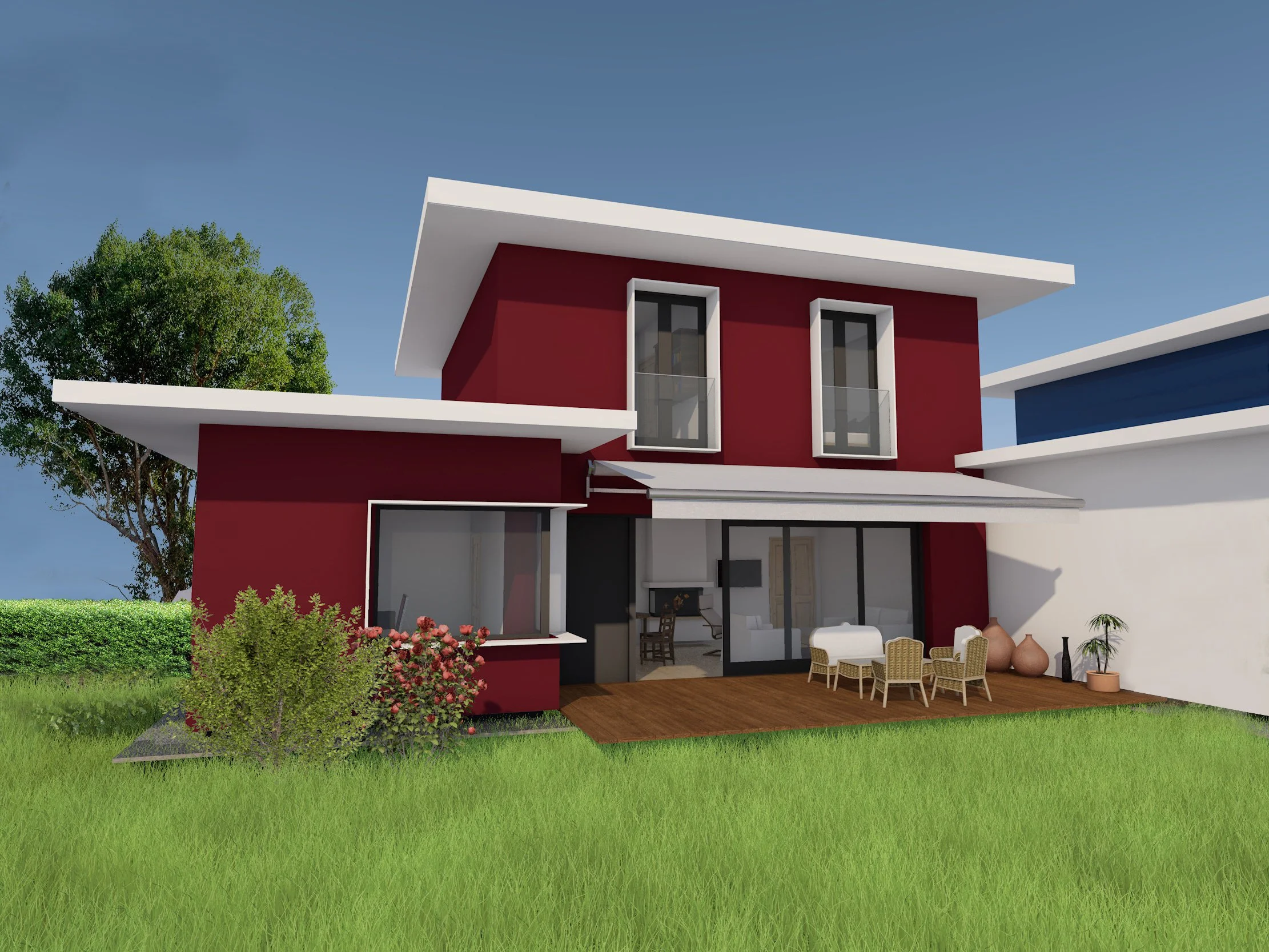 Къщите се предлагат с два вида фасадно третиране: класически бял цвят или цветни фасади. Предложението ни е всяка къща да бъде оцветена отвън само в един цвят, на който да контрастират стрехите, оградите и гаража.