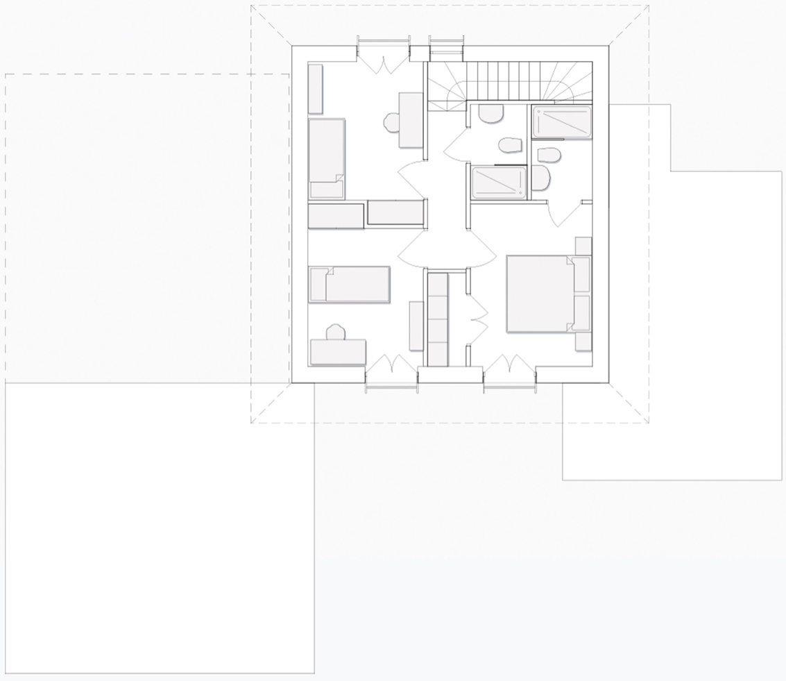 Интериорът на къщата се предлага като концепция, която постига разумен брой вградени мебели, ниши, рафтове - което от своя страна позволява да се избегне прекаленото видимо съдържание на битови предмети из дома. Предвидени са също различни зони на осветление, кактои осветени мебели - като гардероби, дрешници, шкафове и т.н. В основата си интериорът предполага минимална намеса в избора на настилки и стенни облицовки: нашата техническа експертиза цели да реши всички тези детайли, които не се забелязват от неспециалист, но разумното им решение превръща къщите в завършени архитектурни произведения за хубав живот.